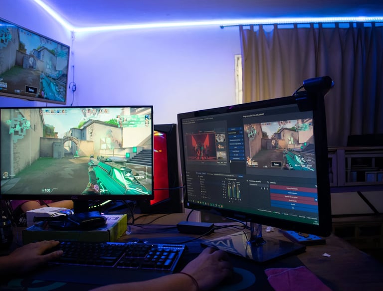 Transmisiones profesionales: PC de stream, dirección en vivo, overlays y soporte técnico.